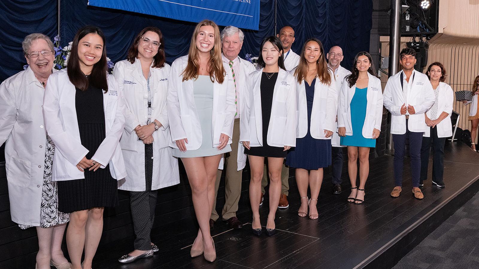 The white coat ceremony kicks off a week of wide-ranging orientation activities that includes a Global and Self Awareness workshop, an anatomy lab, a Skyline boat cruise on the Hudson, Hadestown on Broadway, a pickleball social and a Yankee game.
